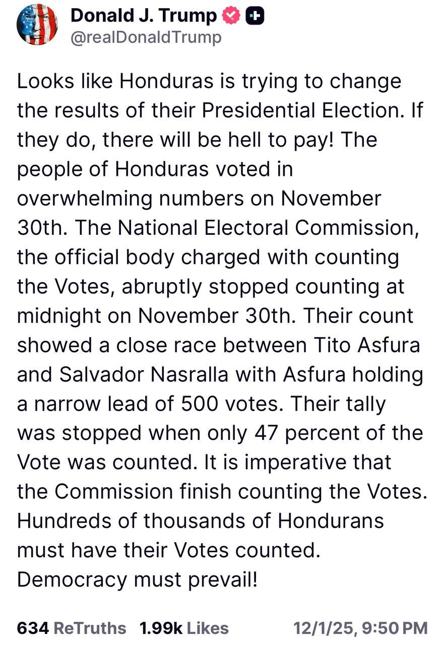 Trump issues open threat to Honduras over their (s)election